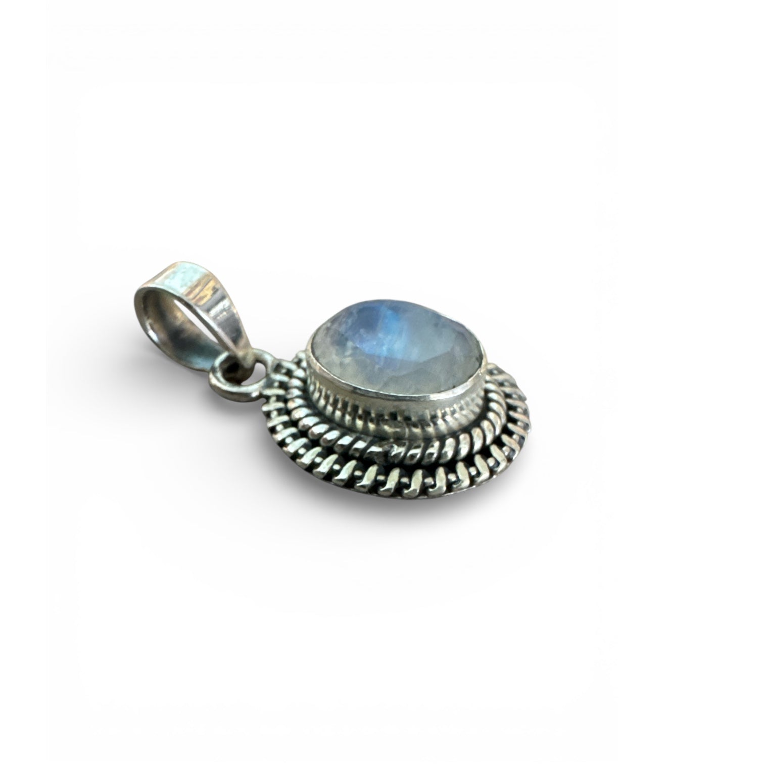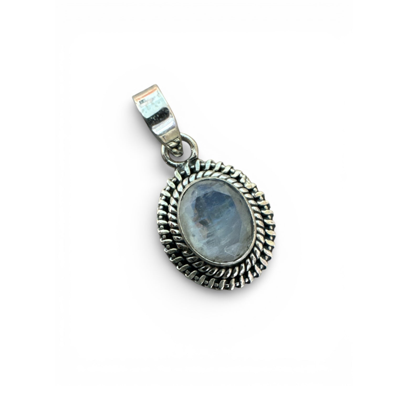 Faceted Rainbow Moonstone Solid 925 Sterling Silver Pendant