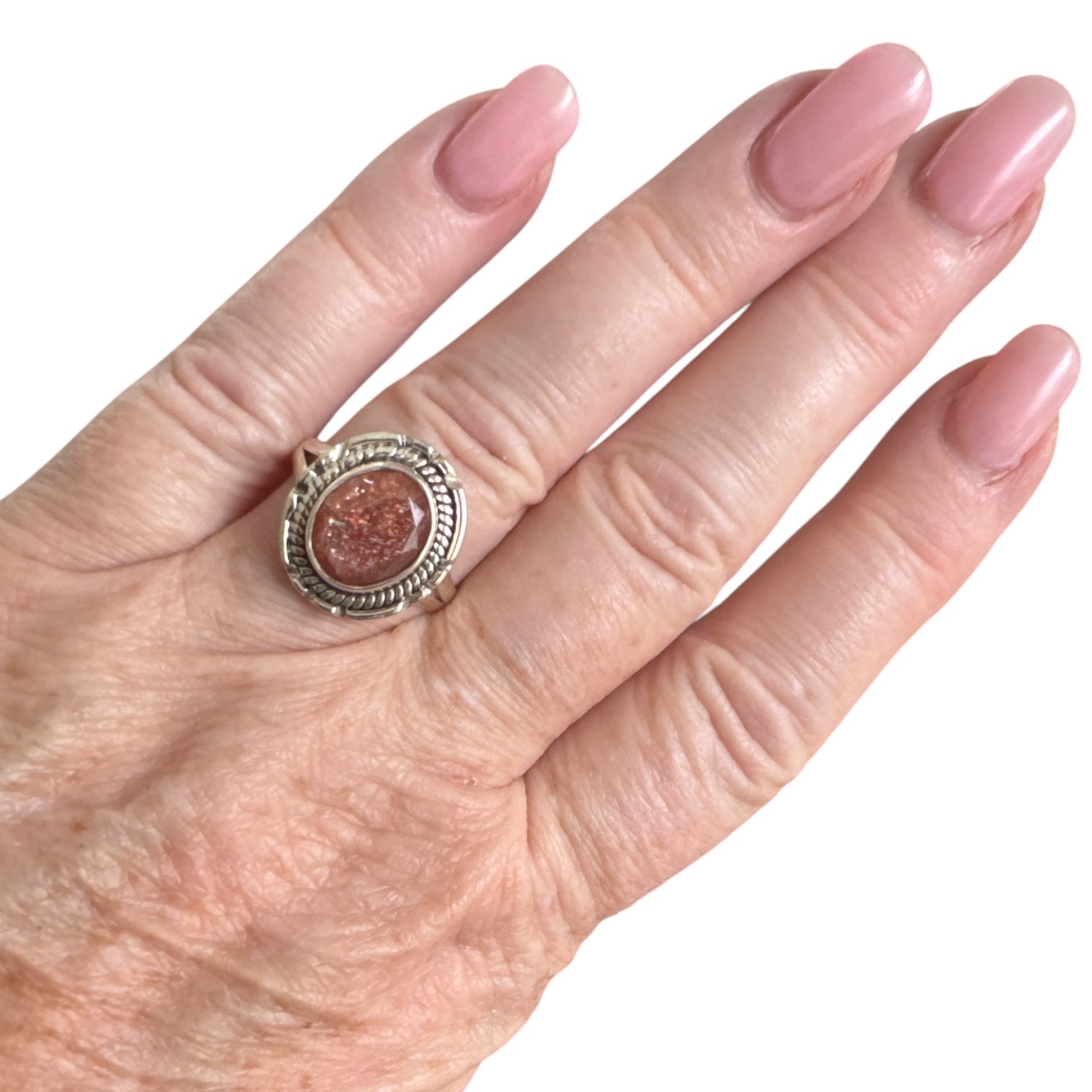 Faceted Sunstone Solid 925 Sterling Silver Ring 8.5