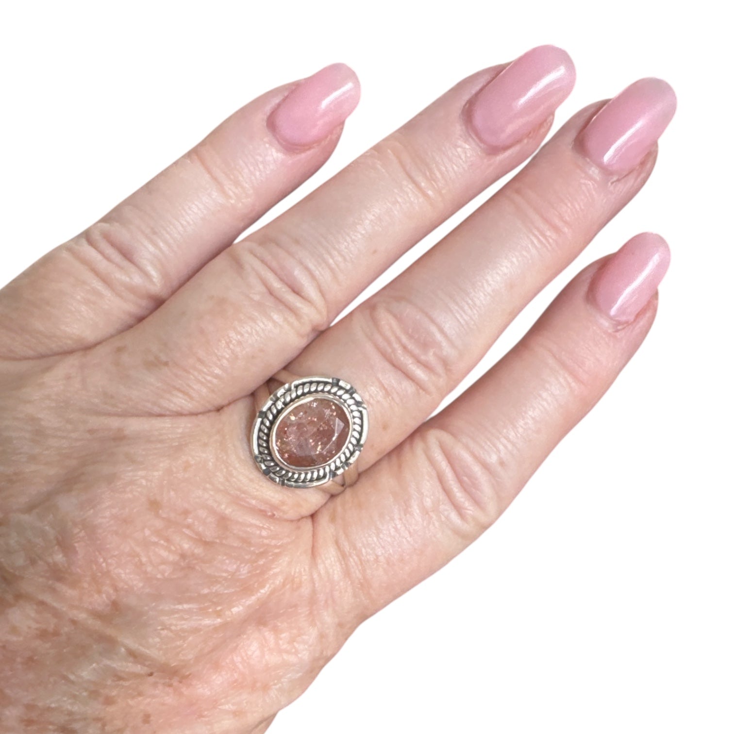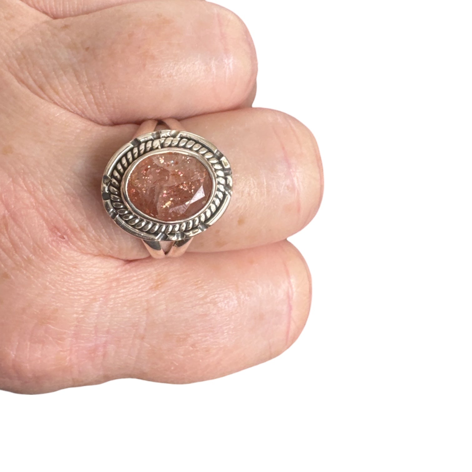 Faceted Sunstone Solid 925 Sterling Silver Ring 9