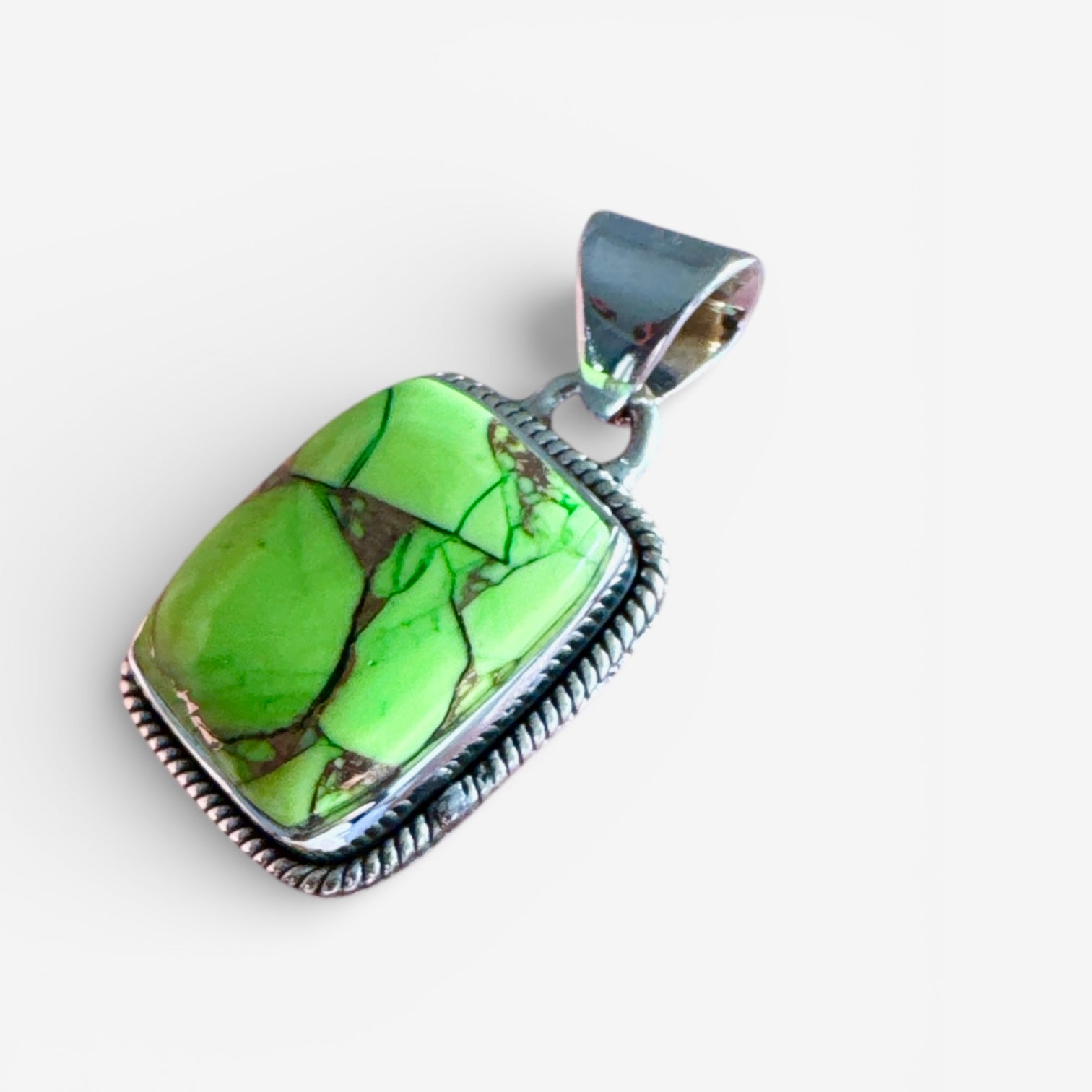 Kingman Lime Green Turquoise Solid 925 Sterling Silver Pendant