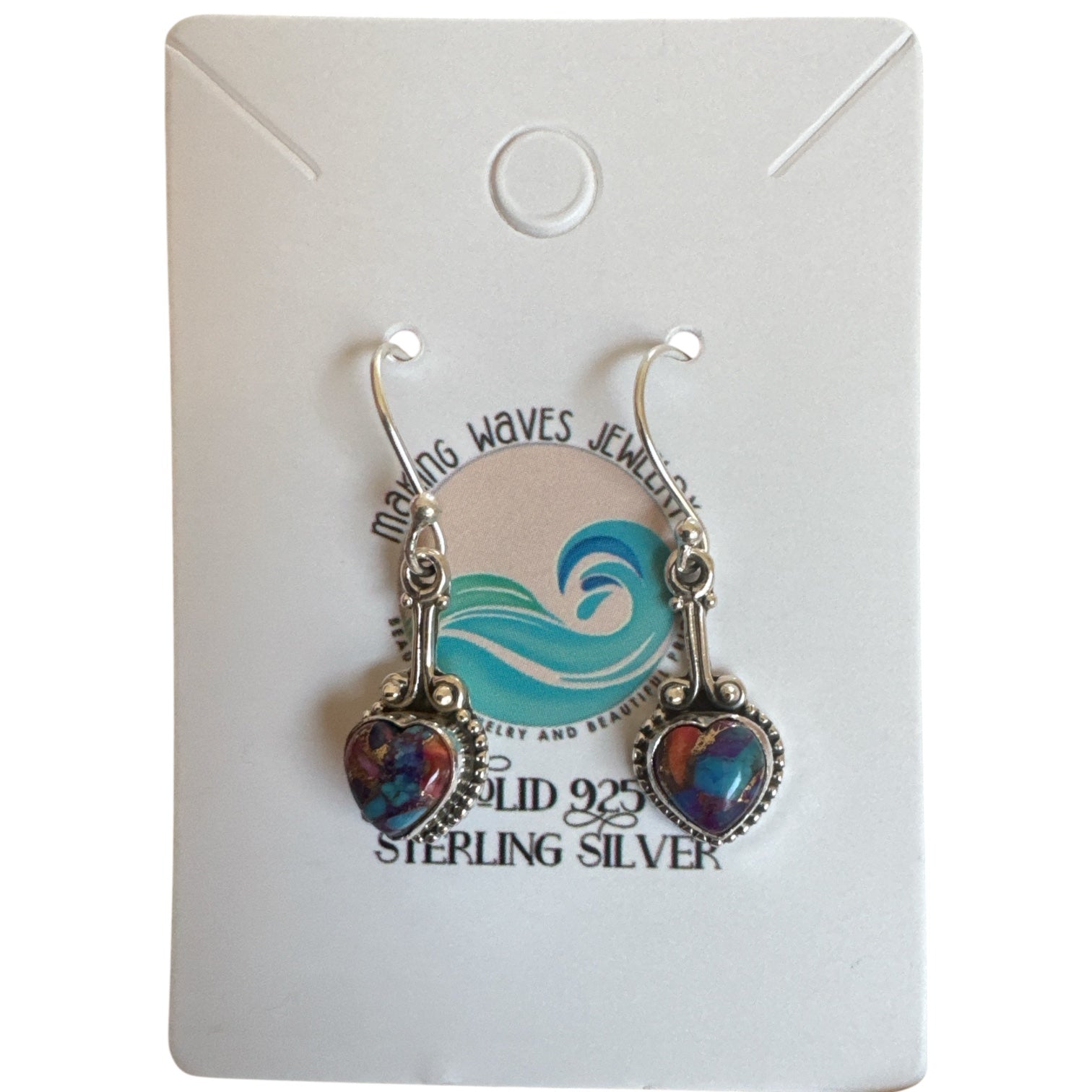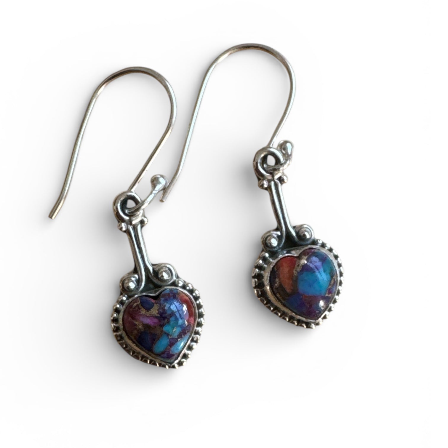 HEART Kingman Pink Dahlia Turquoise Solid 925 Sterling Silver Earrings