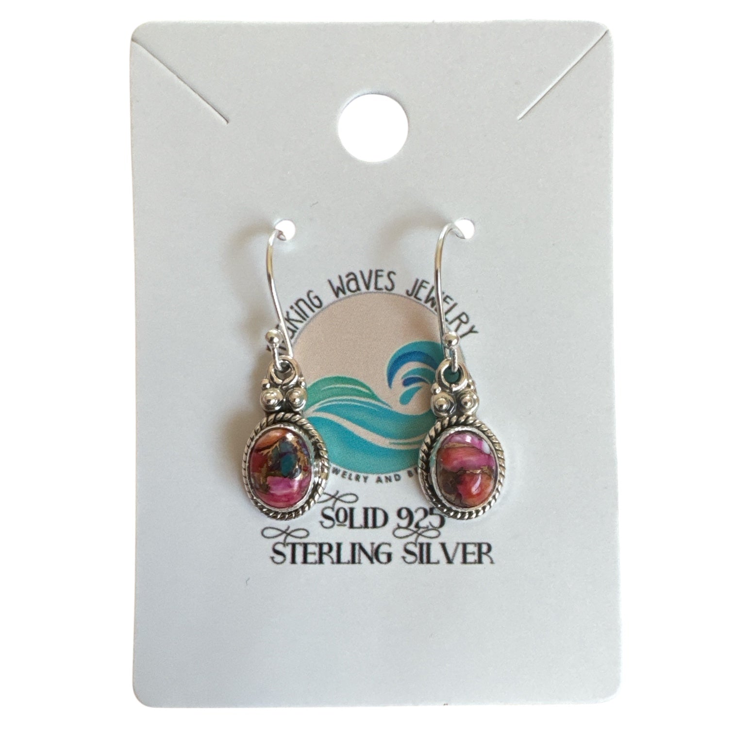 Kingman Pink Dahlia Turquoise Solid 925 Sterling Silver Earrings