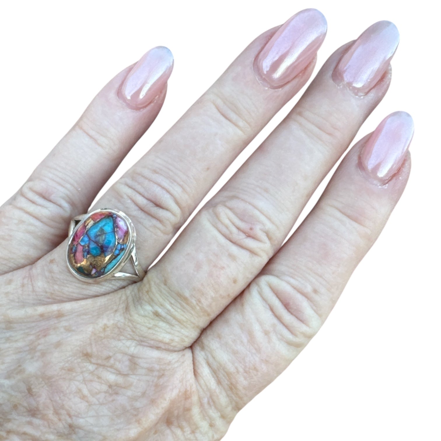 Kingman Pink Dahlia Turquoise Solid 925 Sterling Silver Ring 9