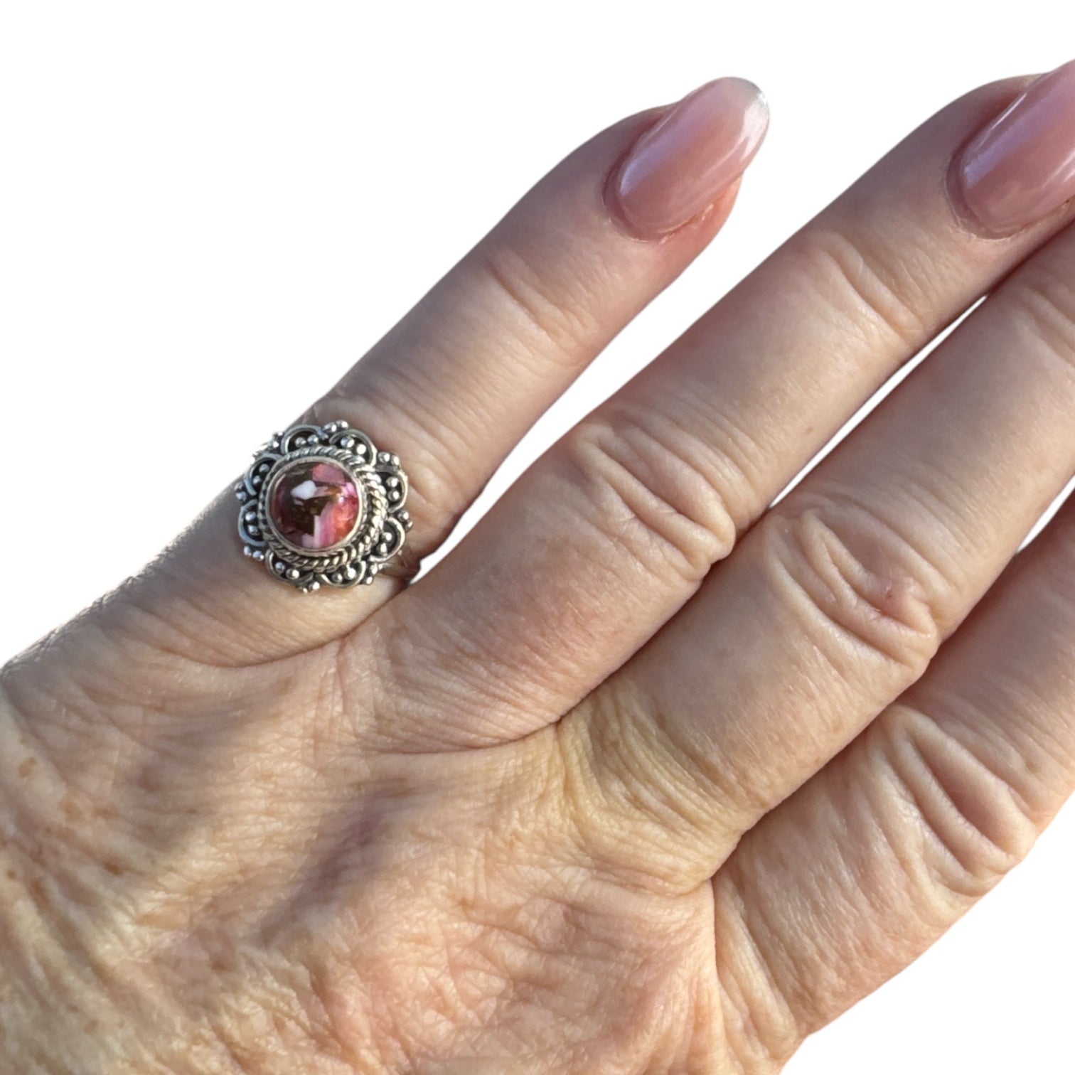 Kingman Pink Dahlia Turquoise Solid 925 Sterling Silver Ring 5