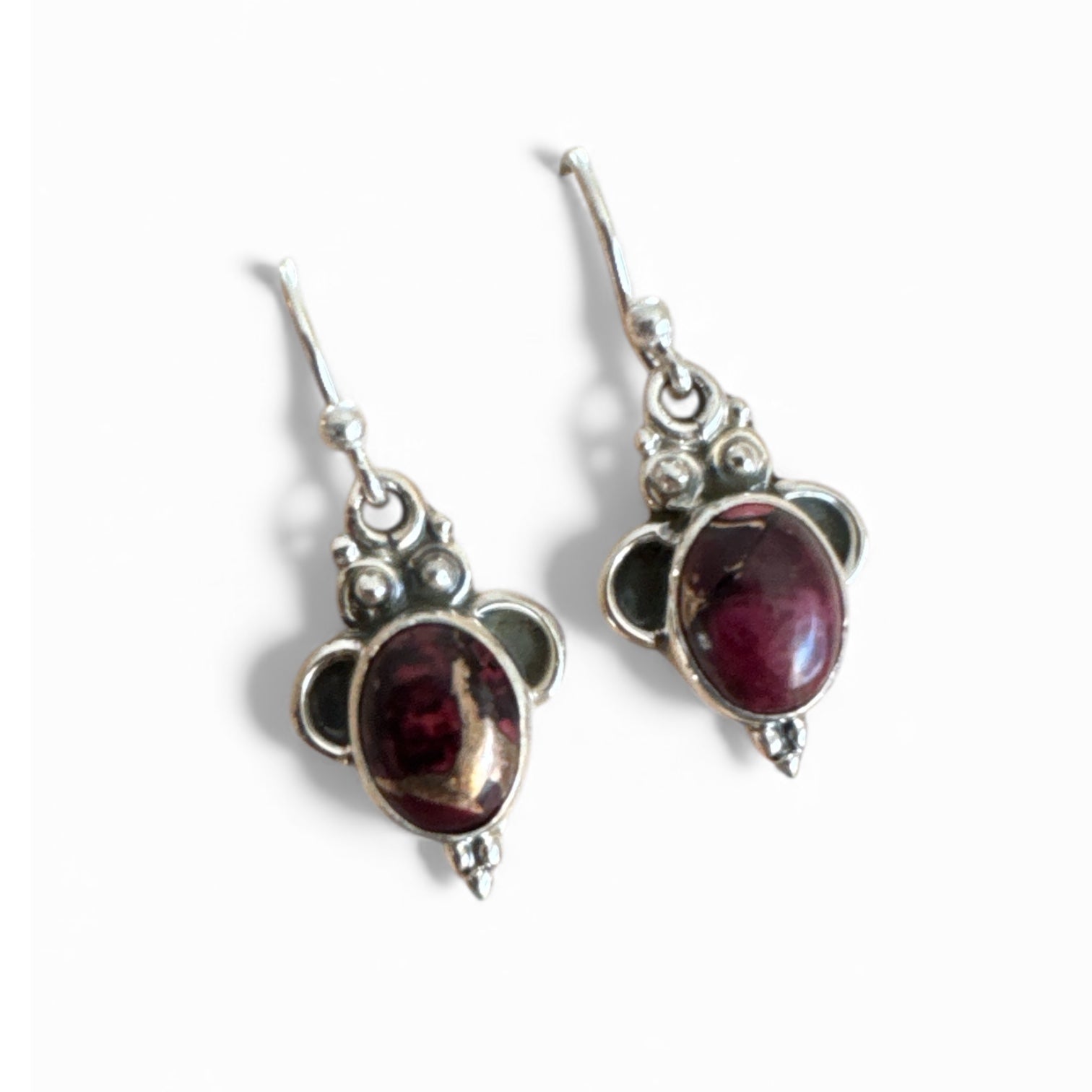 Kingman Red Rose Dahlia Solid 925 Sterling Silver Earrings