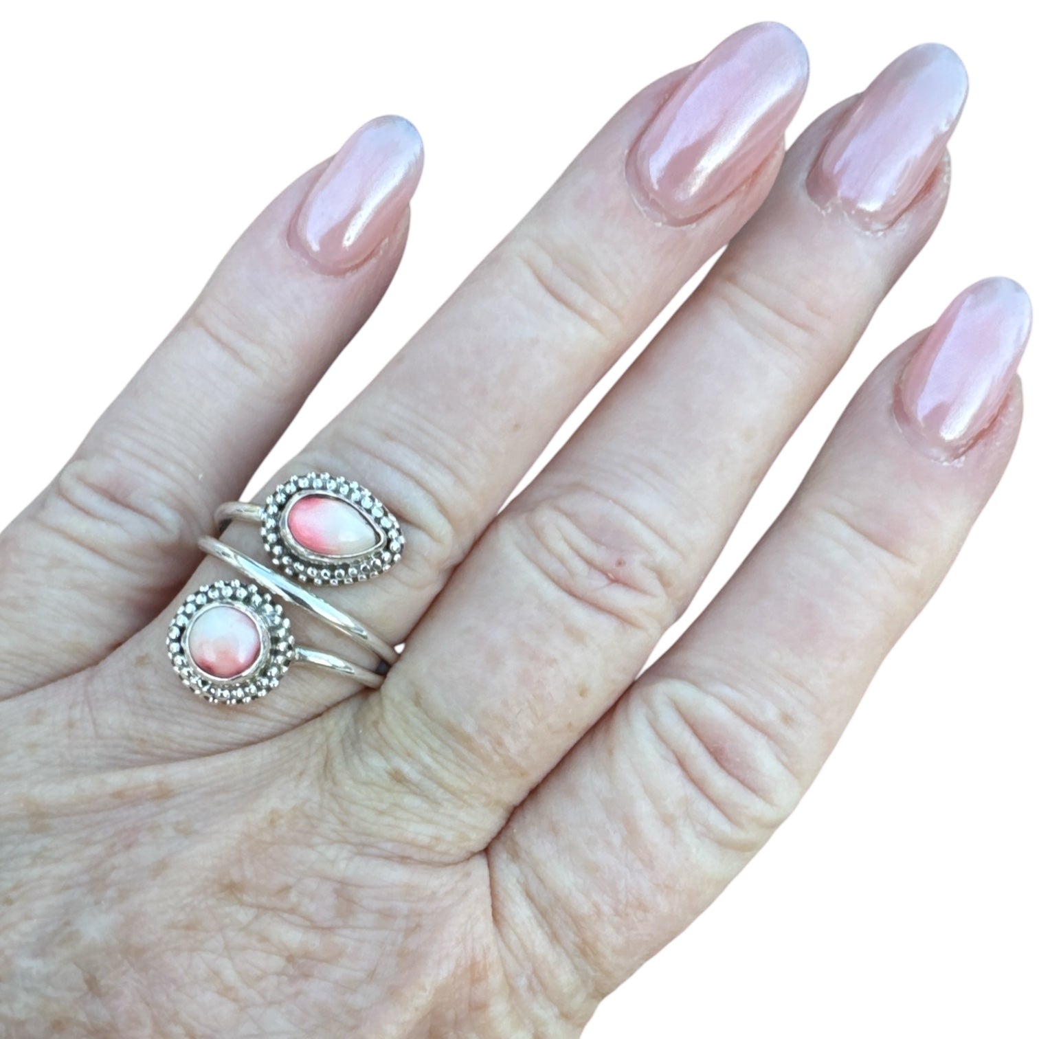 Kingman Red Rose Dahlia Solid 925 Sterling Silver Ring ADJ