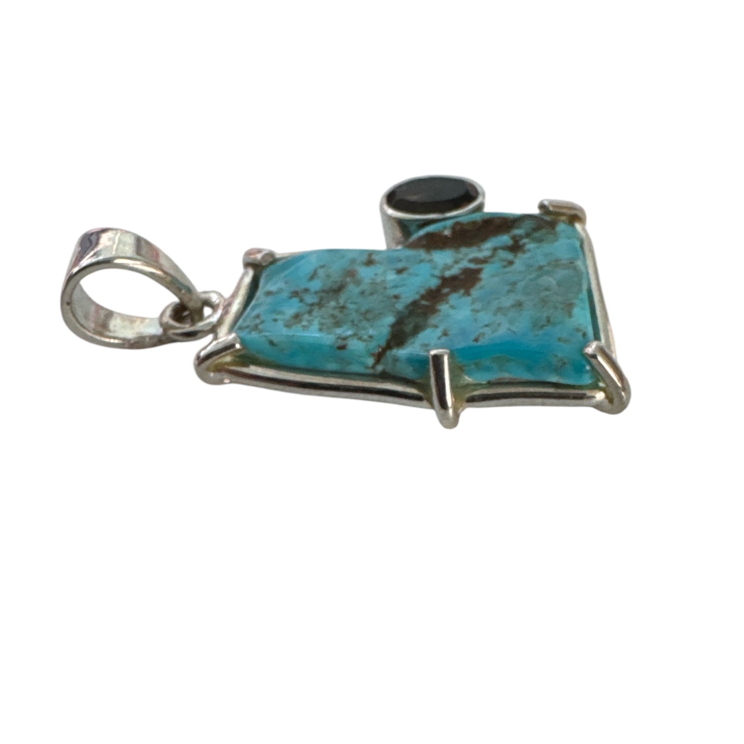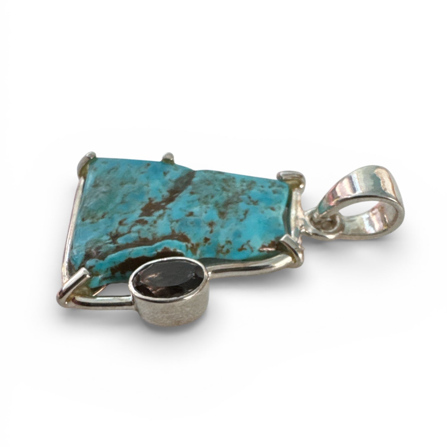 Kingman Turquoise & Smoky Topaz Solid 925 Sterling Silver Pendant