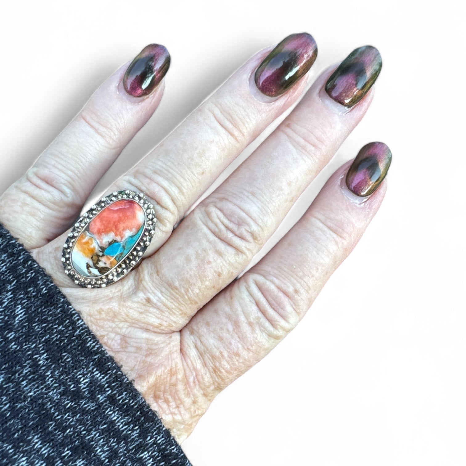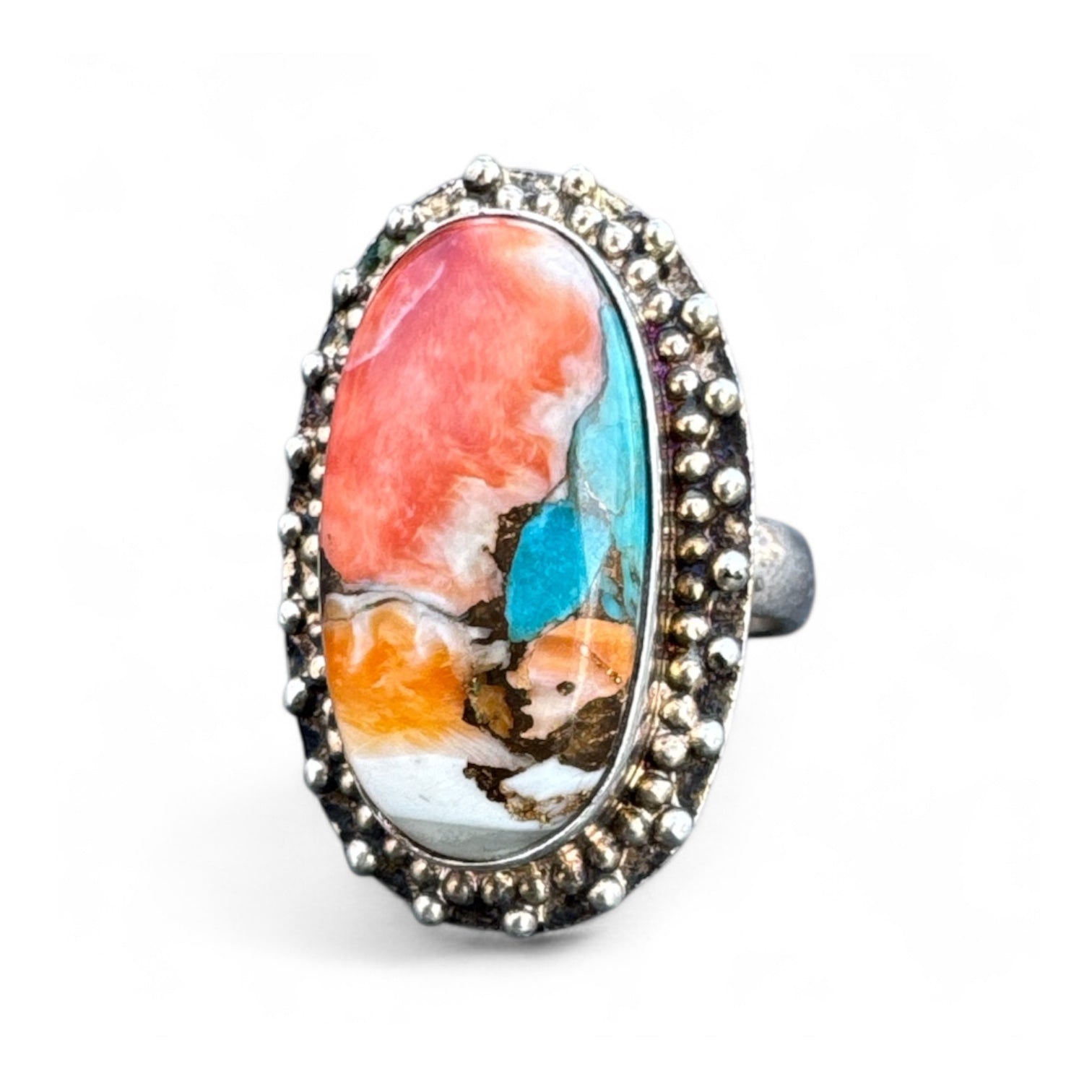 Kingman Turquoise & Spiny Oyster Solid 925 Sterling Silver Ring 6
