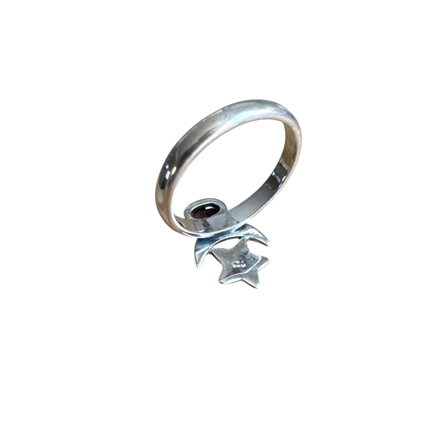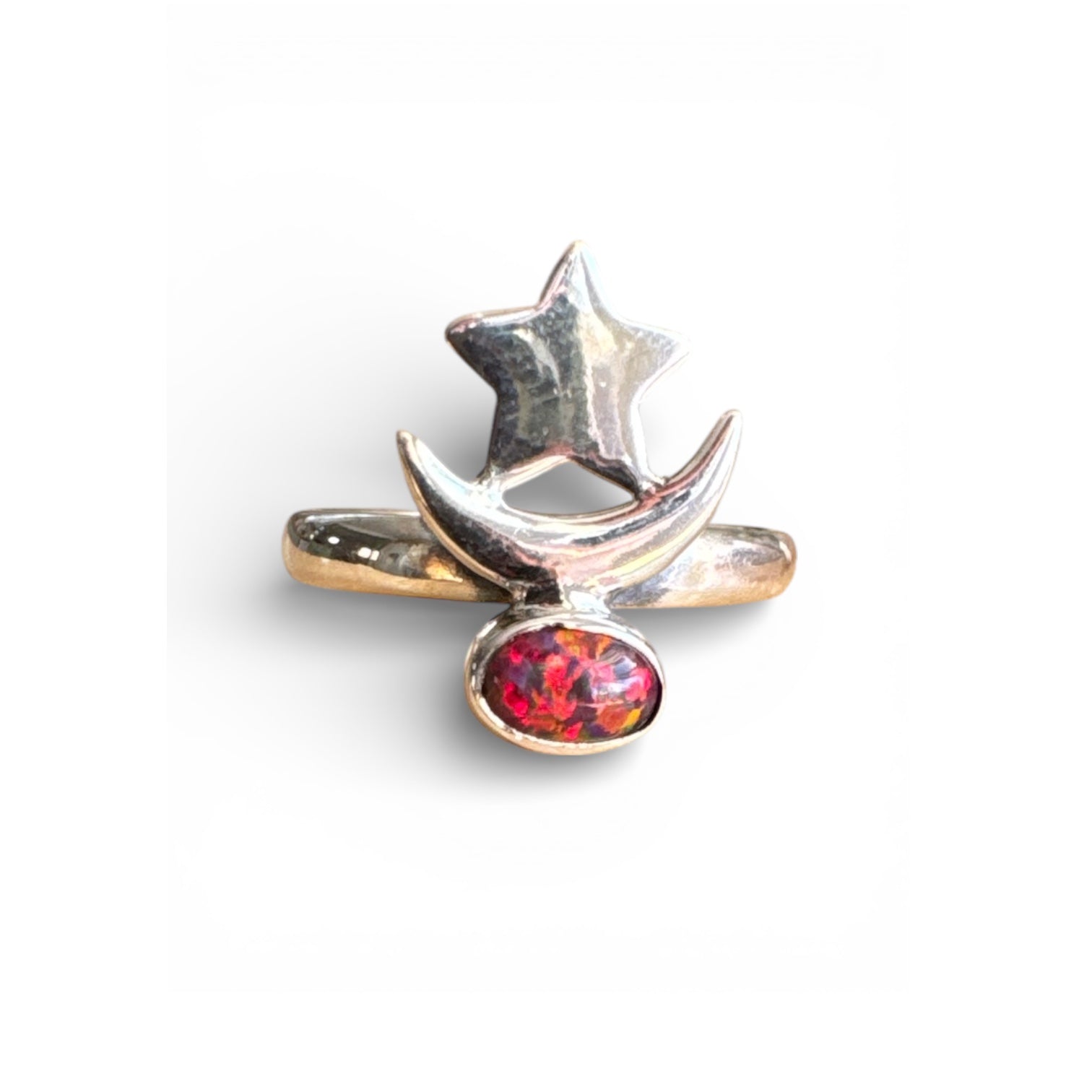 Lab Fire Opal Moon & Star Solid 925 Sterling Silver Ring 7