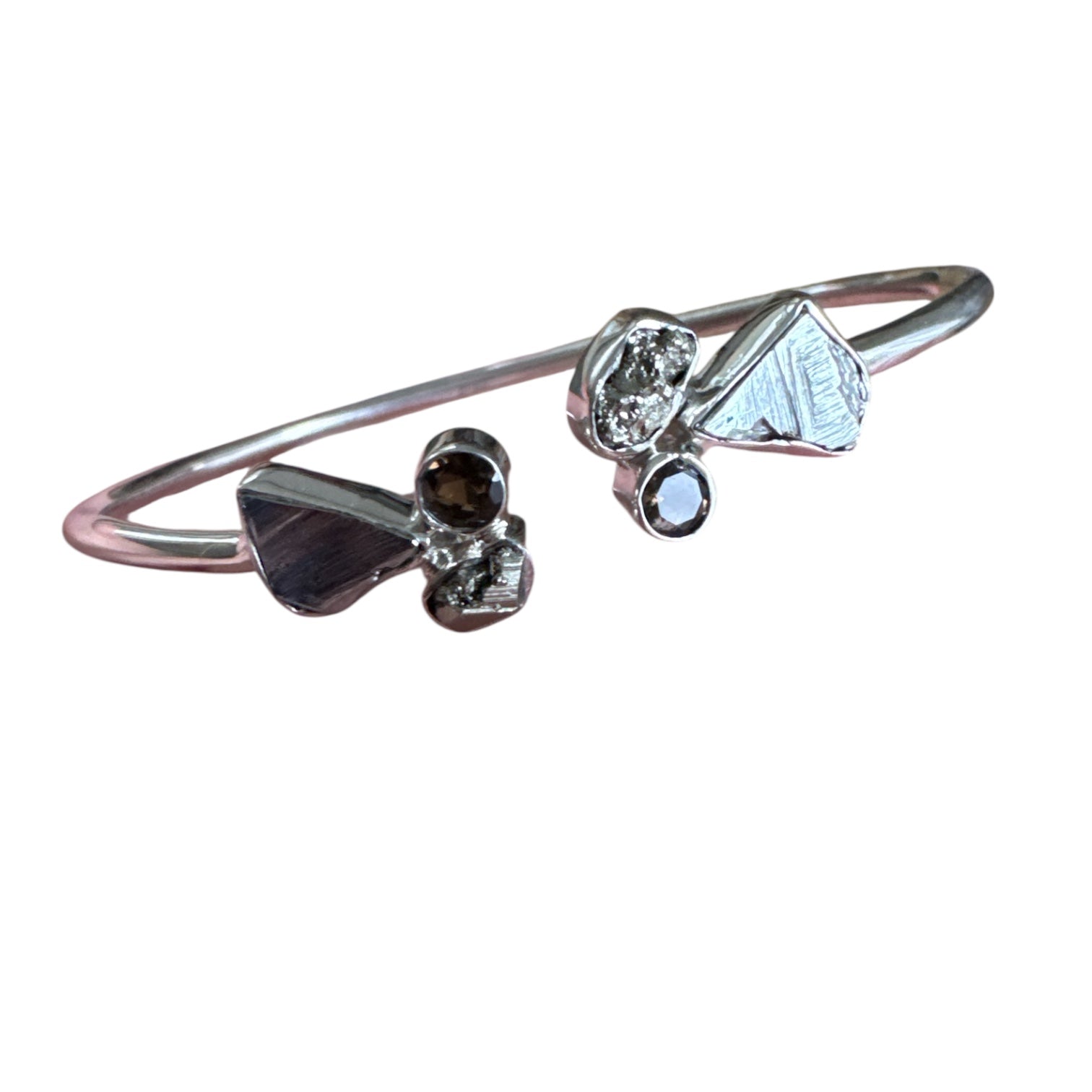 Pyrite, Meterorite & Smoky Topaz Solid 925 Sterling Silver Cuff Bracelet