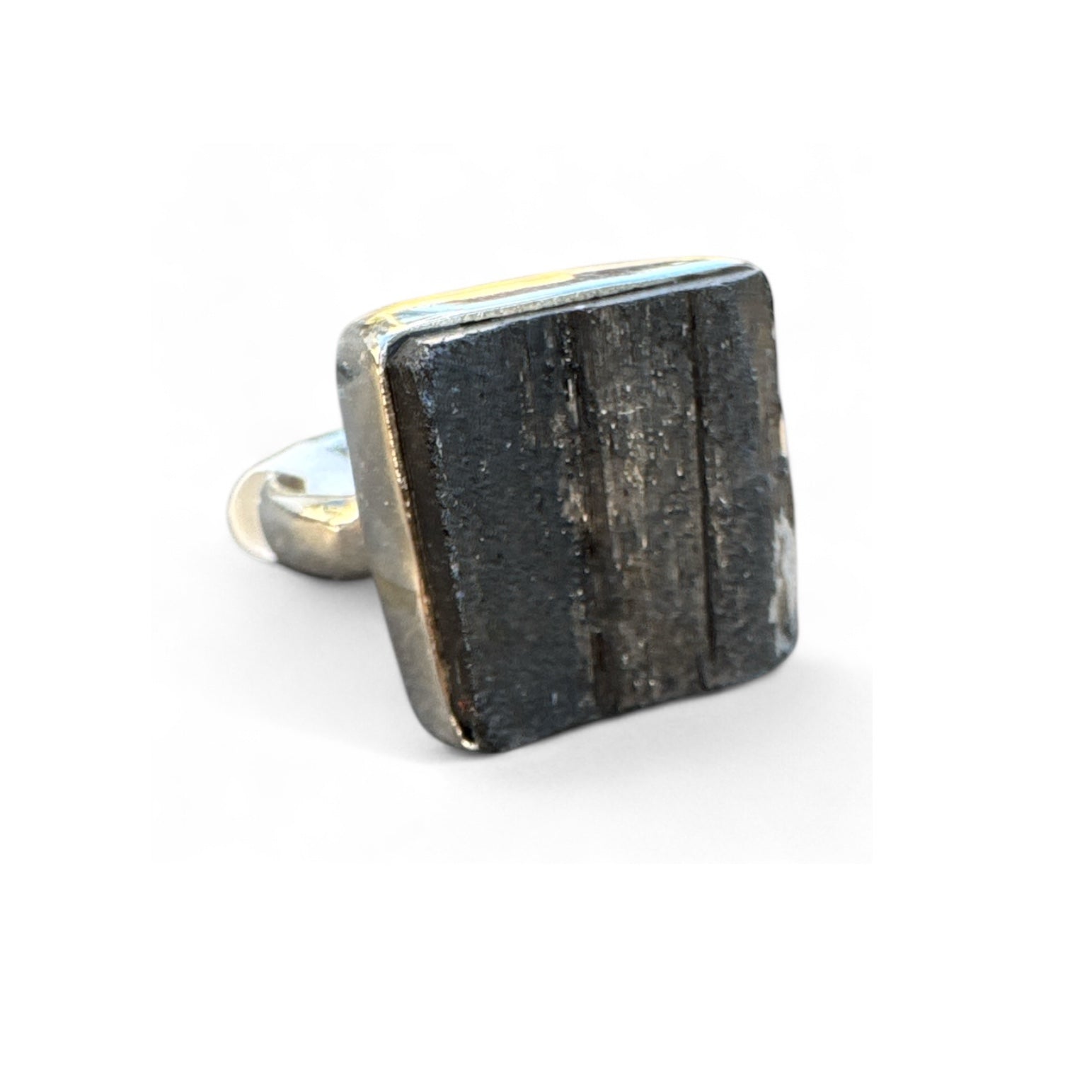 Raw Black Tourmaline Solid 925 Sterling Silver Ring 6
