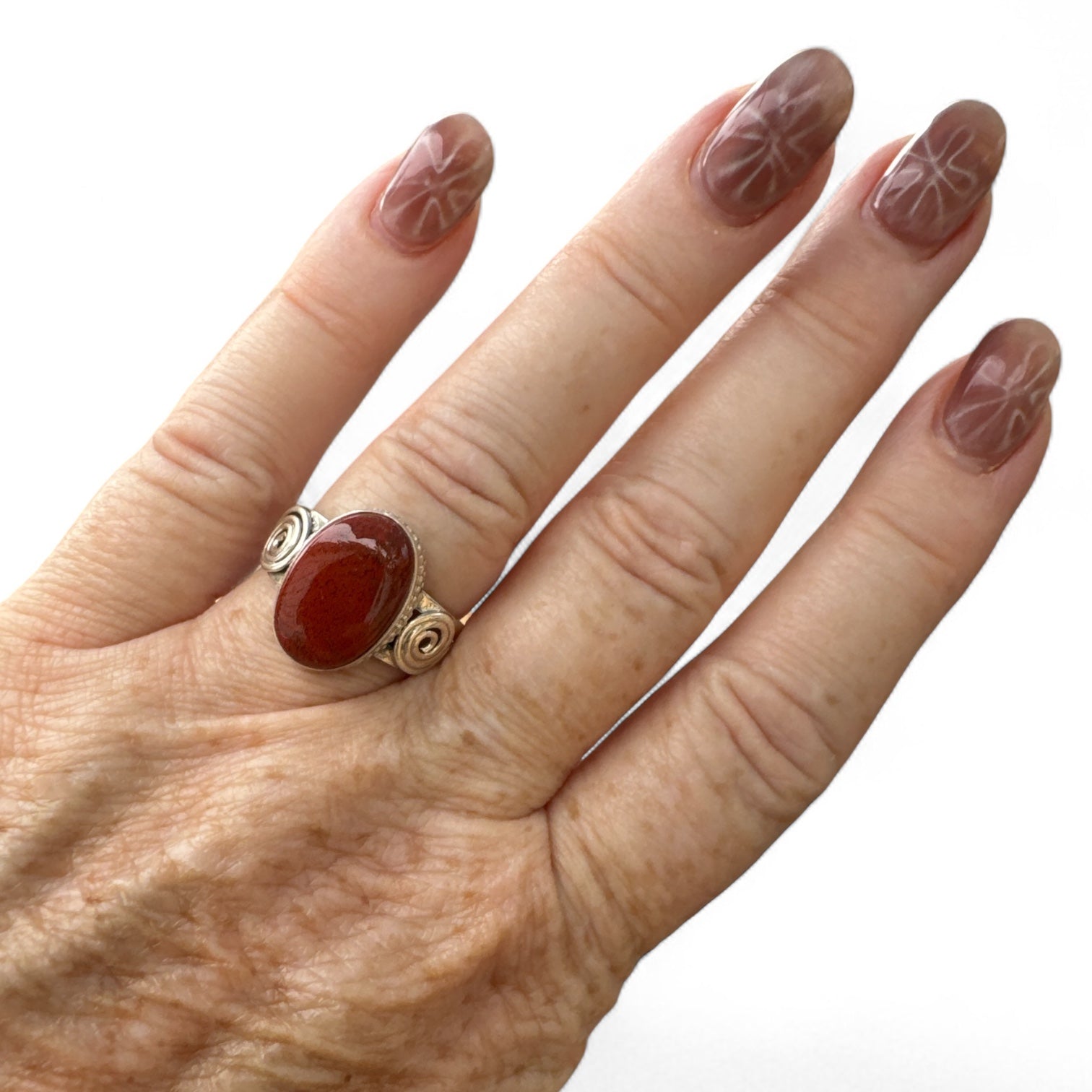 Red Moss Agate Solid 925 Sterling Silver Ring 7.5