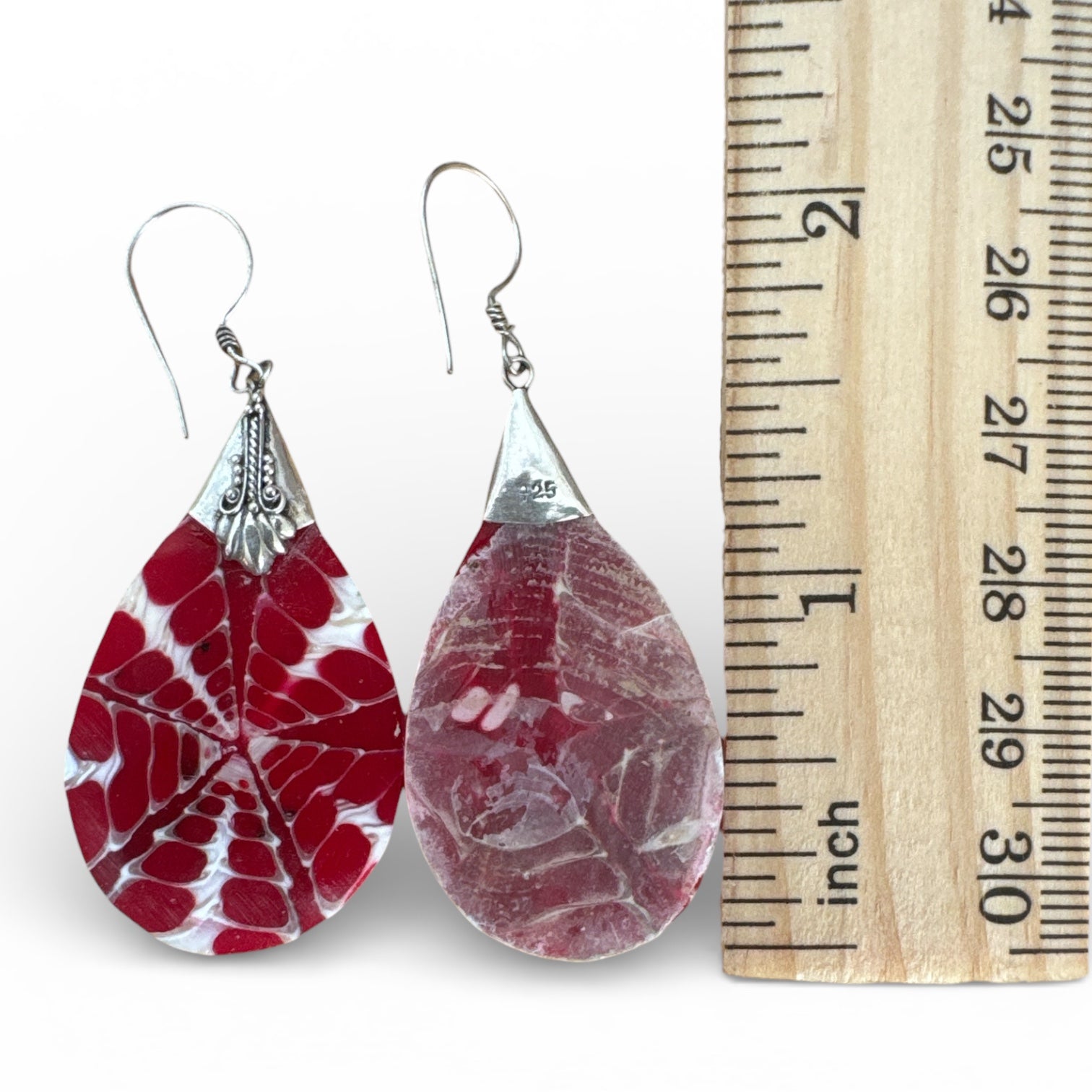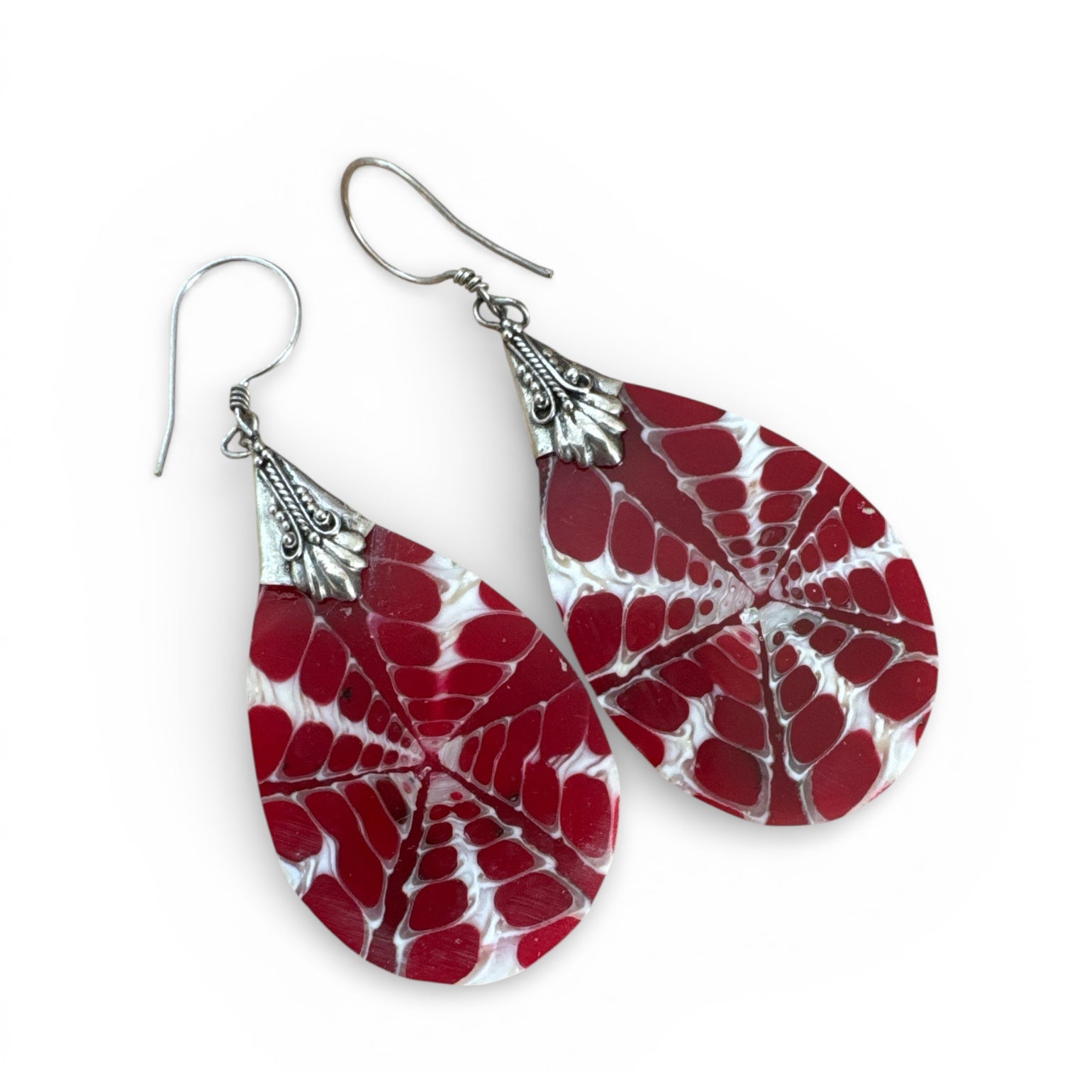 Red & White Shell Solid 925 Sterling Silver Earrings