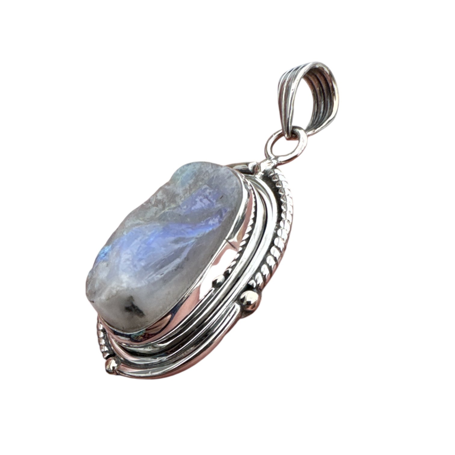 Rough Rainbow Moonstone Solid 925 Sterling Silver Pendant