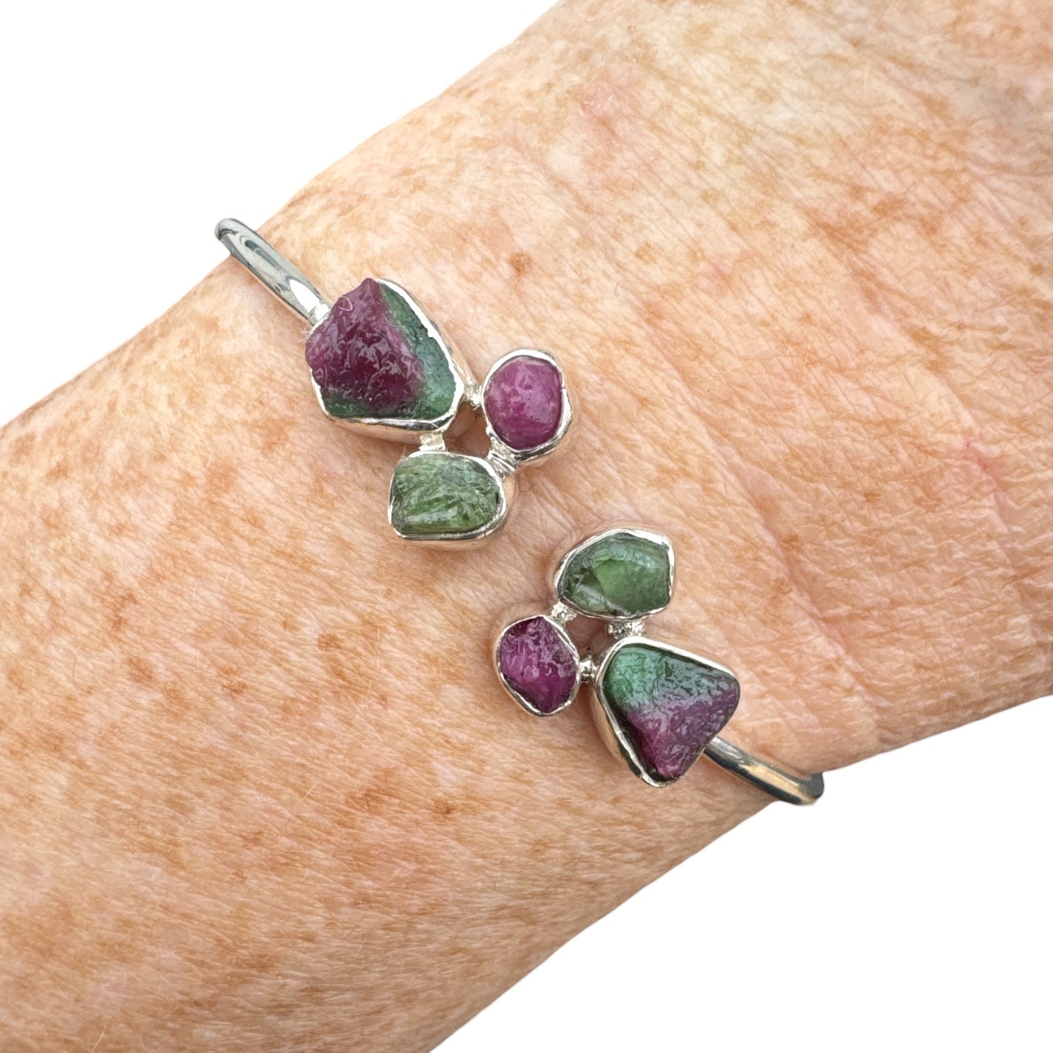 Rough Ruby Zoisite Solid 925 Sterling Silver Cuff Bracelet