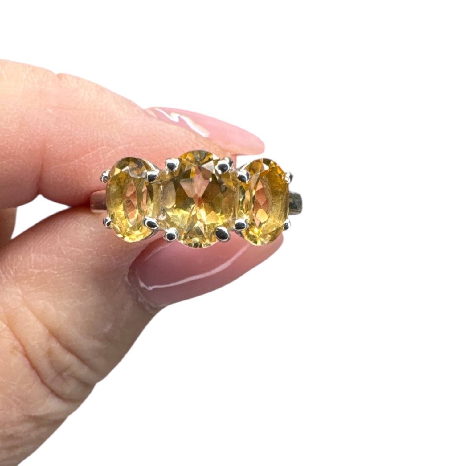 Triple Citrine Solid 925 Sterling Silver Ring 9